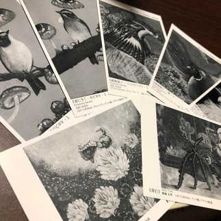 ・野鳥、植物、きのこをモチーフとしたアクリル原画 7点